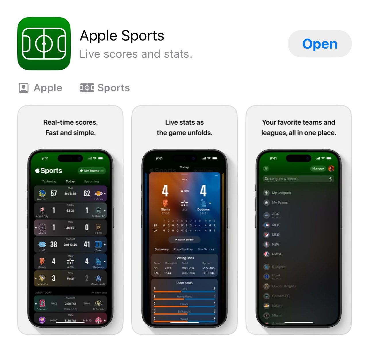 Aplikacja Apple Sports jest już dostępna do pobrania.