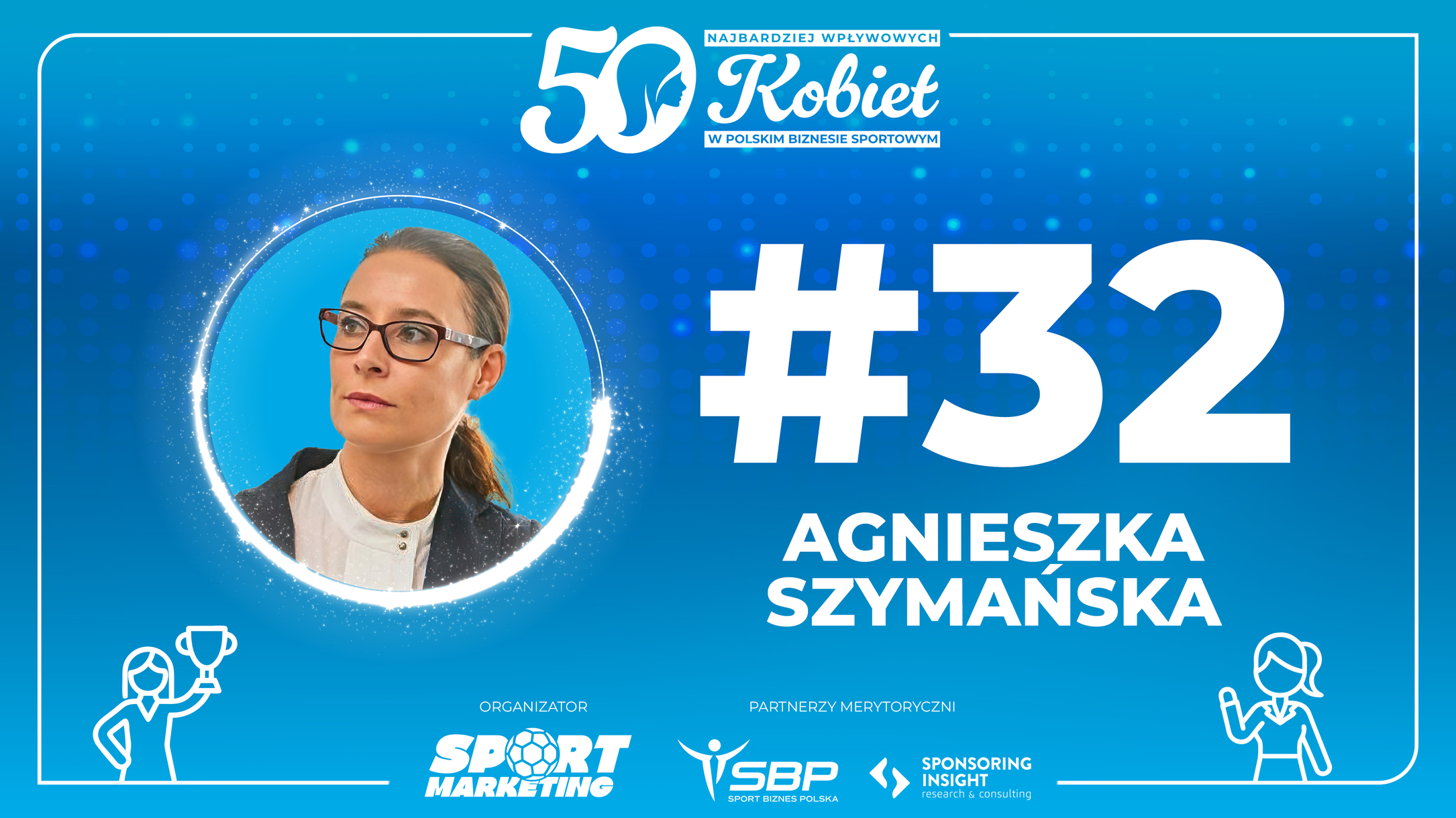 Agnieszka Szymańska zajęła 32. miejsce w rankingu TOP50 Najbardziej Wpływowych Kobiet w Polskim Biznesie Sportowym organizowanym przez portal "SportMarketing.pl". Od ponad 10 lat odpowiada za marketing sportowy PKO BP, głównego sponsora polskiego sportu z sektora bankowego.