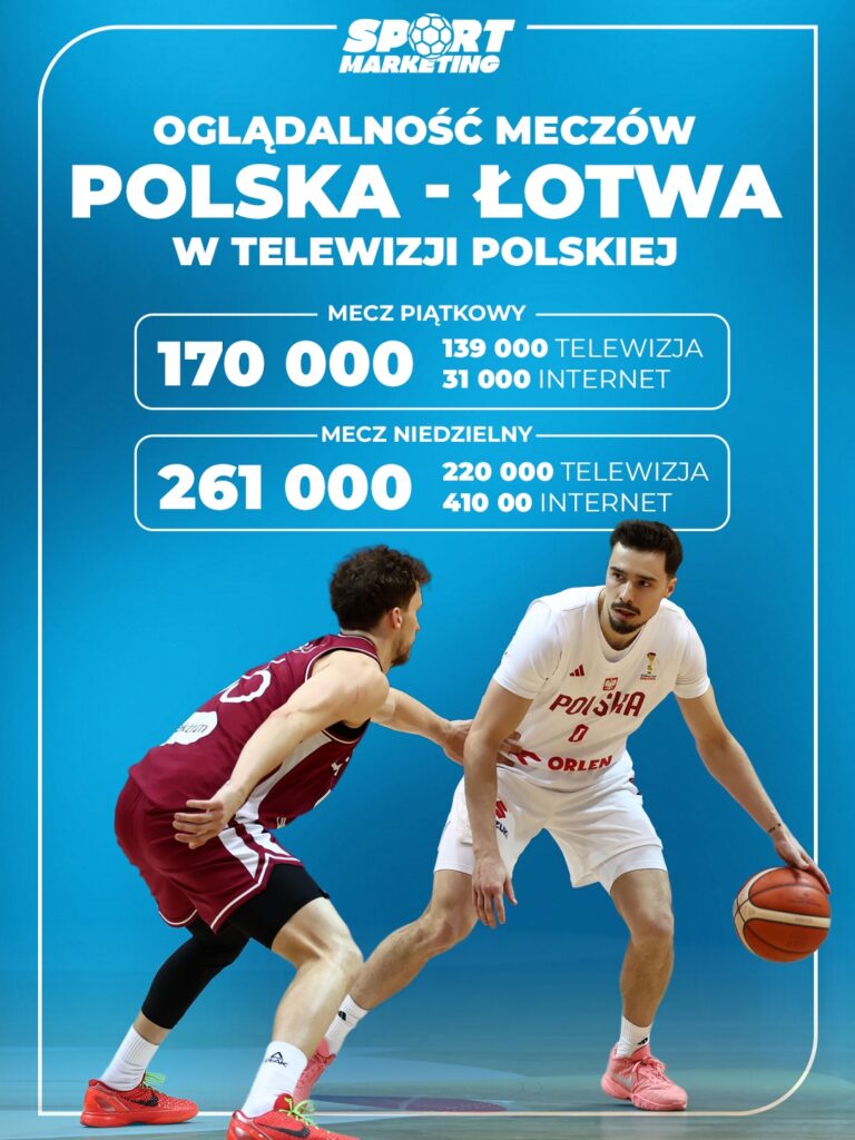 Łącznie oba mecze reprezentacji Polski z Łotwą zgromadziły przed ekranami blisko 370 tysięcy widzów w telewizji i ponad 70 tysięcy w internecie. To wynik potwierdzający, że koszykówka reprezentacyjna wciąż ma w Polsce sporo fanów, zwłaszcza w weekendowym paśmie.
