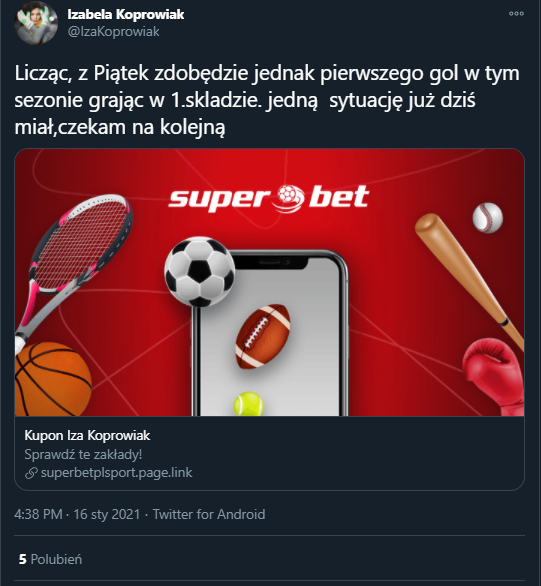 Nic więc dziwnego, że Superbet chce trafić do nowej grupy klientów, ale czy na pewno wybrał słuszną drogę? Z całym szacunkiem do Izabeli Koprowiak, czy Jolanty Zastępy, ale są to osoby nierozpoznawalne szerszemu gronu. Obie panie łącznie na portalu Twitter mają 40 500 obserwujących. Na Instagramie ten wynik jest jeszcze gorszy. Ile wśród tych osób jest pasjonatów zakładów bukmacherskich?