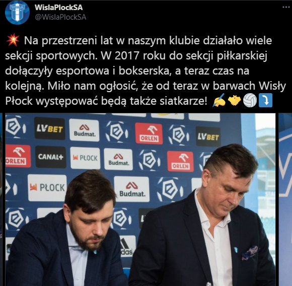 Jak informuje oficjalna strona płockiego klubu to będzie już czwarta sekcja. Po piłkarzach, w 2017 roku dołączyły także dwie kolejne. Bokserska oraz esportowa zamieniając klub w wielosekcyjny. Przypomnijmy, że największe sukcesy płockiego sportu to przede wszystkim występy Wisły Płock w piłce ręcznej mężczyzn. Tyle że oba kluby… formalnie nie mają ze sobą nic wspólnego poza nazwą. W 2010 roku sekcja piłki ręcznej odłączyła się od piłki nożnej.