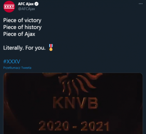 Ajax świętował zdobycie trofeum przy pustych trybunach, co jest oczywiście związane z trwającą pandemią koronawirusa. Amsterdamczycy nie zapomnieli jednak o fanach, którzy okazywali im wsparcie na każdym kroku. Klub przetopił bowiem paterę otrzymaną za mistrzostwo Holandii na 42 000 srebrnych gwiazdek, które rozda wszystkim posiadaczom karnetów. Inicjatywa spotkała się z ogromnym uznaniem środowiska piłkarskiego i fanów na całym świecie.