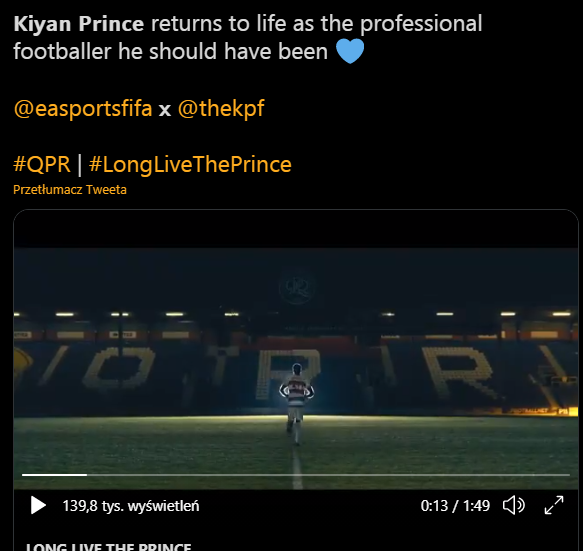 W jaki sposób QPR uczciło pamięć swojego piłkarza? Oryginalny, symboliczny i pasujący do obecnych czasów. Kibice londyńskiego klubu będą mieli okazje zagrać postacią Kiyana Prince’a w najnowszej grze z serii FIFA. To efekt współpracy QPR, wydawcy gry – firmy EA Sports, a także fundacji imienia zamordowanego chłopaka. The Kiyan Prince Foundation prowadzi kampanie przeciwdziałające przestępstwom z użyciem noży, a także „kulturze” ulicznych gangów w Londynie oraz całej Anglii.