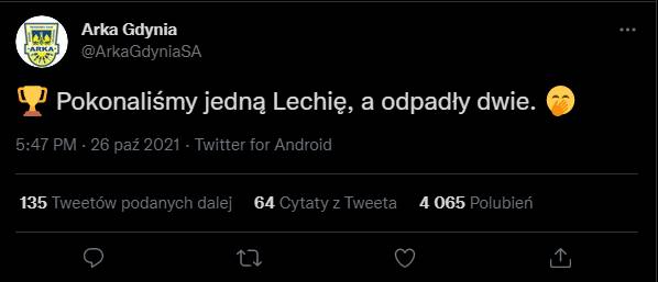 Wtorkowe mecze 1/16 finału Pucharu Polski dostarczyły jedną niespodziankę. Z rozgrywkami pożegnała się Lechia Gdańsk, która sensacyjnie przegrała ze Świtem Nowy Dwór 1:2. Okazję do wbicia szpileczki wyczuła Arka Gdynia. Gdański klub zareagował najgorzej jak mógł.