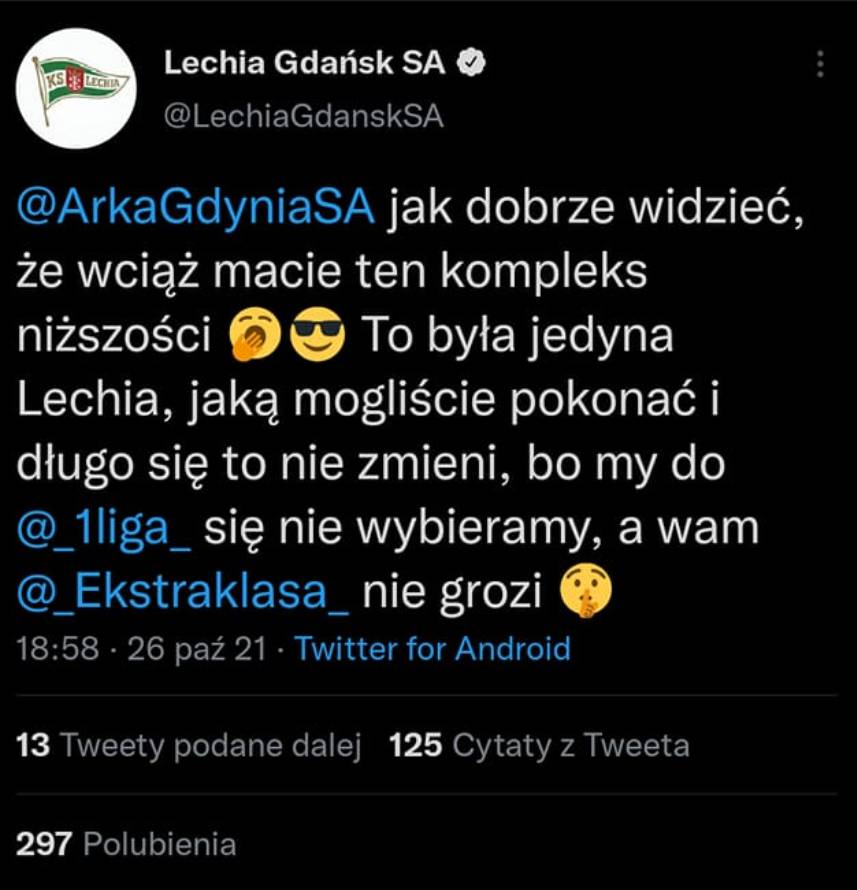 Lechia Gdańsk oczywiście zareagowała na ten post. Niestety, zrobiła to w najgorszy możliwy sposób.