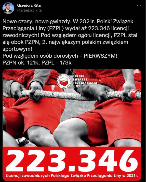 Jeszcze niecałe dwa lata temu raczej niewiele osób interesowało się Polskim Związkiem Przeciągania Liny. W związku z sytuacją, jaka miała miejsce w naszym kraju, PZPL stał się bardzo popularnym związkiem. Jak się okazuje, mowa o największym polskim związku sportowym w kategorii osób dorosłych. PZPL wydał w 2021 roku ponad 200 tys. licencji.