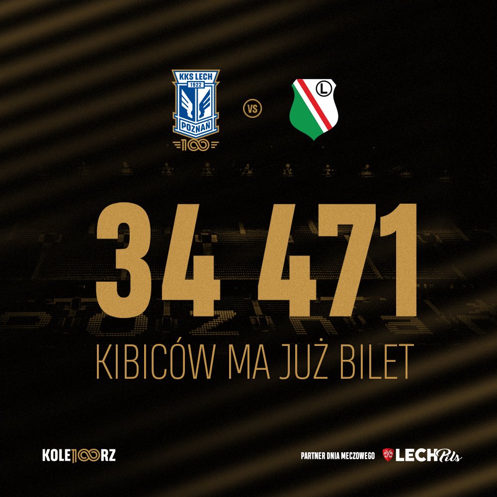 Już wczoraj Lech Poznań pochwalił się okolicznością grafiką, w której poinformował o liczbie zajętych miejsc na mecz z warszawskim zespołem. Liczby robią wrażenie, zwłaszcza że mowa o okresie ponad dwóch tygodni przed spotkaniem.