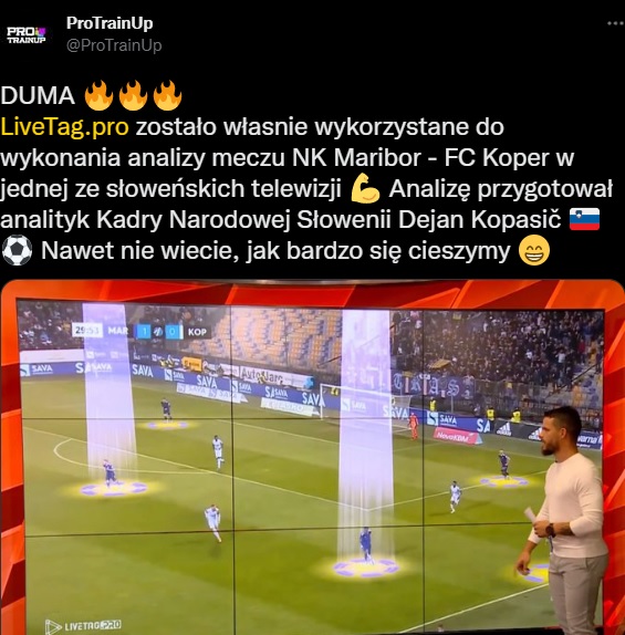 Zawsze się cieszymy, gdy polski produkt jest wysokiej jakości. Jeszcze bardziej, gdy korzystają z niego w innych krajach robiąc mu tym samym reklamę. Tak jest w przypadku polskie firmy ProTrainUp, której system do analiz meczowych był używany w słoweńskiej telewizji.