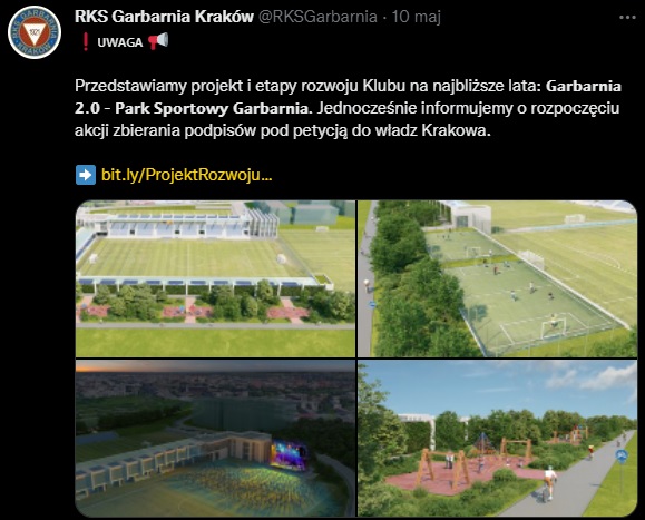 – Projekt Garbarnia 2.0 został stworzony z myślą o zapewnieniu korzyści zarówno dla naszego Klubu, Miasta Krakowa oraz jego mieszkańców. Poszczególne etapy planu tworzą spójną całość dla powstania Parku Sportowego Garbarnia, który przez lata będzie nowoczesnym, sportowo – rekreacyjnym miejscem na mapie Krakowa. Będą mogli z niego korzystać zawodnicy drużyn RKS Garbarnia, dzieci i młodzież trenująca w Stowarzyszeniu, Miasto Kraków w celu organizacji przeróżnych turniejów sportowych (również tych międzynarodowych) jak i innych eventów takich jak koncerty, festiwale, targi, pokazy. Ponadto mieszkańcy okolicznych osiedli spędzający wolny czas na powstałych terenach rekreacyjnych i w obiektach utworzonych z myślą o lokalnej społeczności – czytamy na stronie klubu.