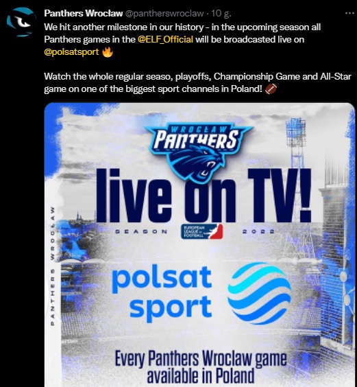 Już na początku czerwca mistrz Polski rozpoczyna swoją rywalizacje w Europejskiej Lidze Futbolu Amerykańskiego. Panthers Wrocław rozegra aż dwanaście meczów w odpowiedniku Ligi Mistrzów tej dyscypliny. Wszystkie spotkania pokaże Polsat Sport!