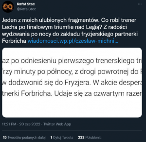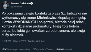 O krok dalej niż wymowne milczenie posunął się dziennikarz Sport.pl, Kuba Seweryn, który zdecydował się… stanąć w obronie Czesława Michniewicza.