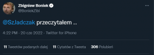 Dość wymowny jest również wpis Szymona Jadczaka, który zasugerował, że milczenie niektórych dziennikarzy go nie dziwi, bowiem w aktach sprawy kilkakrotnie pojawiały się informacje o kontaktach „Fryzjera” z dziennikarzami.