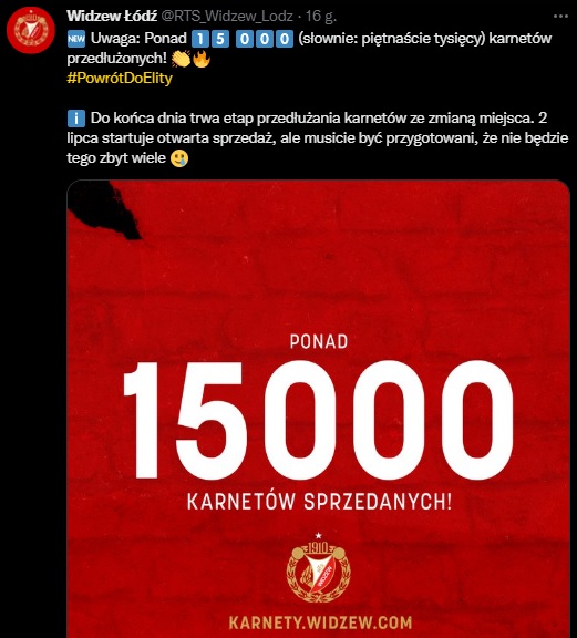 Widzew sprzedał ponad 15 tysięcy karnetów!