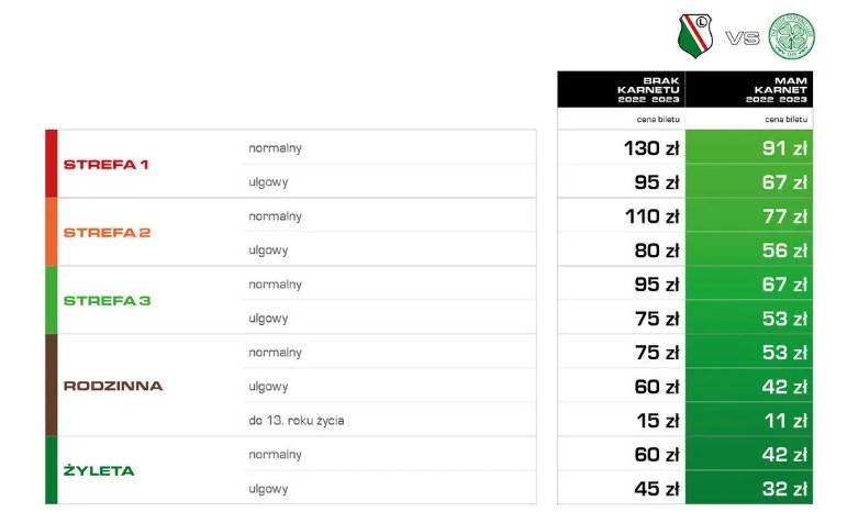 Chyba nikt nie ma wątpliwości, że ceny po prostu urągają zdrowemu rozsądkowi. 130 złotych za najdroższy bilet, który jest dostępny dla kibica bez karnetu. Nawet posiadacze sezonowych abonamentów nie będą mieli tanio. W tym przypadku mówimy o 30% zniżce, która przekłada się na 91 złotych!
