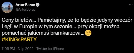 Piękna kariera Artura Boruca dobiegła końca. Niestety, już wiadomo, że zakończenie odbędzie się w cieniu absurdalnych cen biletów. Legia Warszawa rozegra towarzyski mecz z Celtikiem, a kibice będą musieli zapłacić astronomiczne kwoty za obejrzenie "Kings' Party".