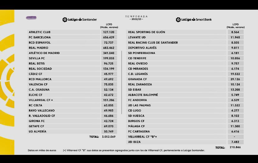 LaLiga opublikowała nowe limity wynagrodzeń na niedawno rozpoczętą kampanię.