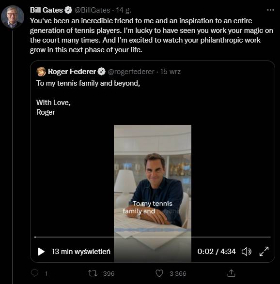 Na decyzję Rogera Federera zareagował nawet Bill Gates.