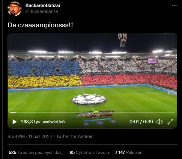 Przed pierwszym gwizdkiem sędziego, gdy rozległ się hymn Ligi Mistrzów, na trybunach mogliśmy zaobserwować wyjątkową oprawę przygotowaną przez gospodarzy tego spotkania.