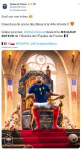 Reprezentacja Francji wyeliminowała Polaków z Mistrzostw Świata w Katarze wygrywając mecz 1/8 finału 3:1. Pierwszego gola dla Trójkolorowych strzelił Olivier Giroud. Dzięki temu 36-letni napastnik stał się najlepszym strzelcem w historii swojej reprezentacji.