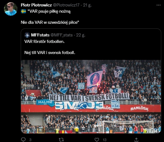 Wczoraj Malmo wrzuciło krótki, acz jasny komunikat na swoje social media. – Malmo FF sprzeciwia się wprowadzeniu VAR w szwedzkiej piłce nożnej. Członkowie stowarzyszenia zdecydowali o tym na corocznym spotkaniu. Stanowisko klubu w tej sprawie zostało jasno przedstawione w rozmowach ze szwedzkim związkiem – czytamy. Warto dodać, że to nie jest pojedynczy przypadek w tym kraju. – Opór klubów jest totalny. Obecnie nie ma ani jednego w Szwecji, który byłby za – napisał na Twitterze Piotr Piotrowicz, zajmujący się szwedzkim futbolem.