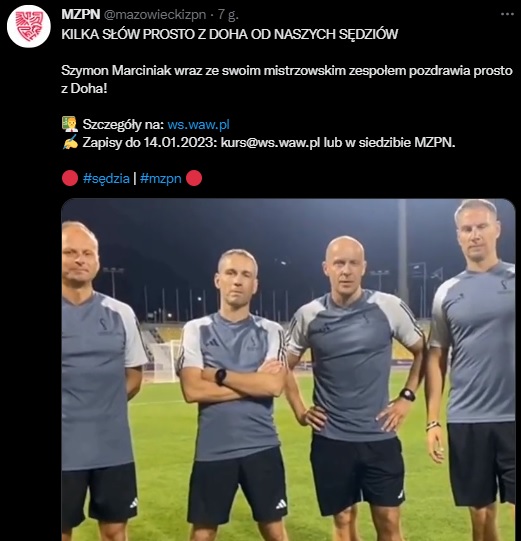 – Szymon był 20-latkiem, kiedy zdecydował się zapisać na kurs. Potem było sędziowanie w młodszych kat. wiekowych, niższych ligach i droga szczebel po szczeblu aż do Finału Mistrzostw Świata. Ta ekipa jest przykładem na to, że można. Zapraszamy chętnych na kurs. Warto spróbować! – napisał na Twitterze Tomasz Flakowski, sekretarz MZPN.