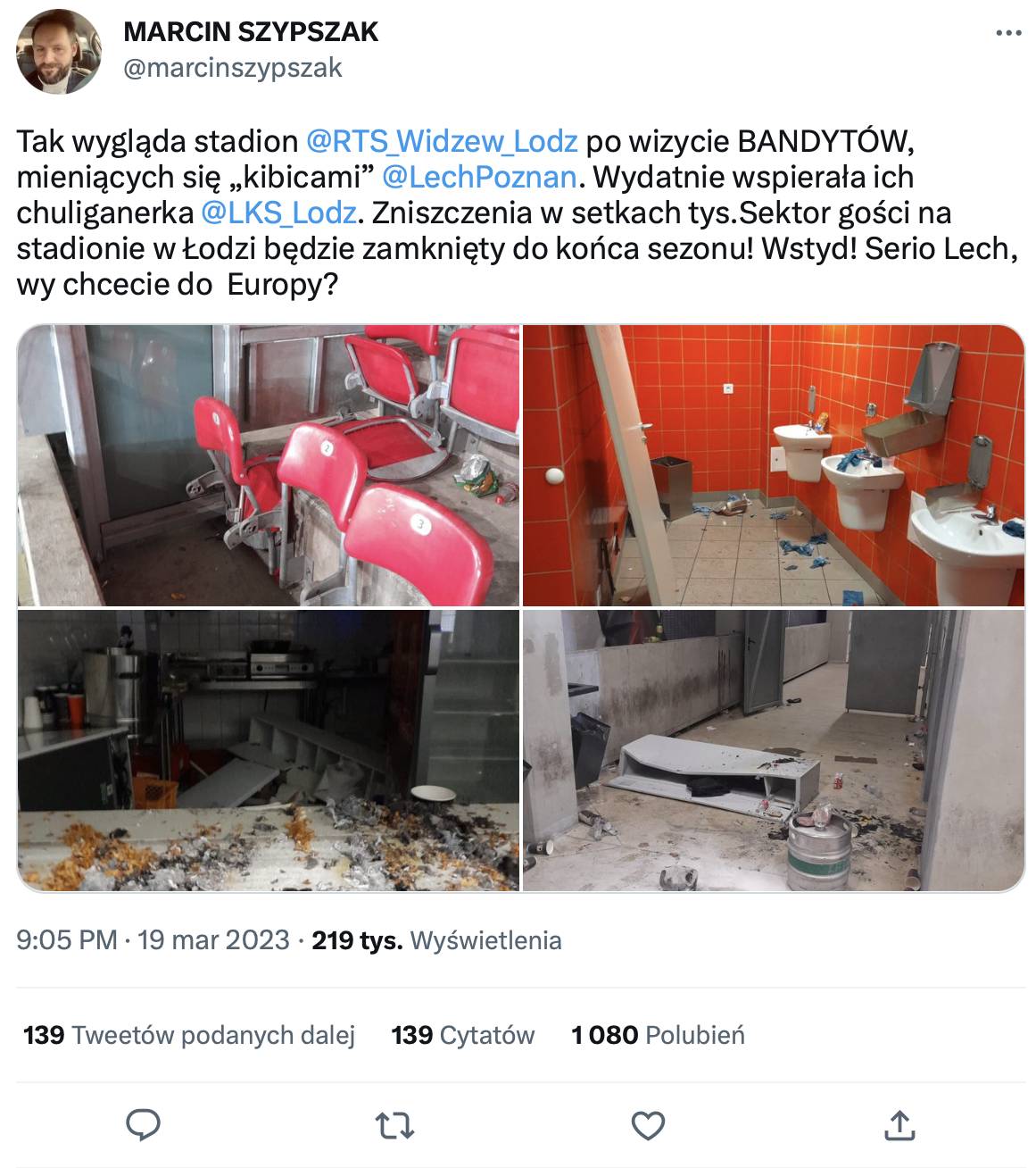 O całej sytuacji poinformował na Twitterze dziennikarz TVP 3 Łódź, Maciej Szypszak. We wpisie czytamy, że za zniszczenia odpowiedzialni są kibice „Kolejorza”, którzy wpierani byli przez fanów ŁKS-u. Straty związane z niedzielnymi wydarzeniami sięgnąć mogą nawet kilkuset tysięcy złotych.