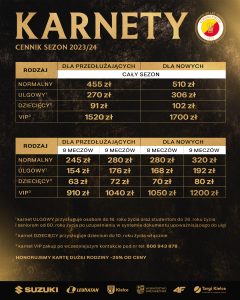 Drużyna Stali Mielec także nie rozpoczęła sprzedaży swoich karnetów, jednakże klub informuje, że ceny nie ulegną zmianie i pozostaną na poziomie tych z sezonu 2022/2023.