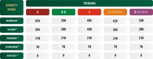 Jeżeli chodzi o Legię Warszawa, ceny wśród abonamentów normalnych oscylują tu w granicach od 352 do 1199 złotych w zależności od tego, kiedy kupujemy dany karnet. Ulgowe zaczynają się od 292 złotych, a kończą na 899 złotych.