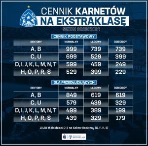 Drużyna, która rzutem na taśmę utrzymała się w najwyższej klasie rozgrywkowej w Polsce, czyli Śląsk Wrocław, również poinformowała o cenach karnetów. Za normalny zapłacić musimy od 285 do 635 złotych. Za ulgowy musimy zapłacić od 230 do 565 zł. Klub wprowadził także zniżki studenckie, uczniowskie i dziecięce.