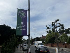 To właśnie stacja Southfields jest co roku specjalnie przyozdabiana na wimbledońskie motywy, dzięki czemu od razu po opuszczeniu metra jest się wprowadzonym w turniejowy klimat. Wysiadasz i już wiesz, że to tutaj zaczyna się twoja wimbledońska przygoda. Stamtąd najlepiej udać się pieszo na obiekty przy Church Road. Podczas około 20-minutowej drogi można zobaczyć ciekawie zaaranżowane (oczywiście wszystko w klimacie tenisowym) sklepy, kawiarnie i inne punkty usługowe. Osobiście szczególnie polecam kawiarnię Drop Shot, która serwuje pyszne śniadania z tenisowego menu. Można zamówić m.in. dania o takich nazwach jak: Rafa Na-Dill, The Advantage, The Break Point czy Game, Set & Match. Przy odrobinie szczęścia można też spotkać tam tenisistów i tenisistki.