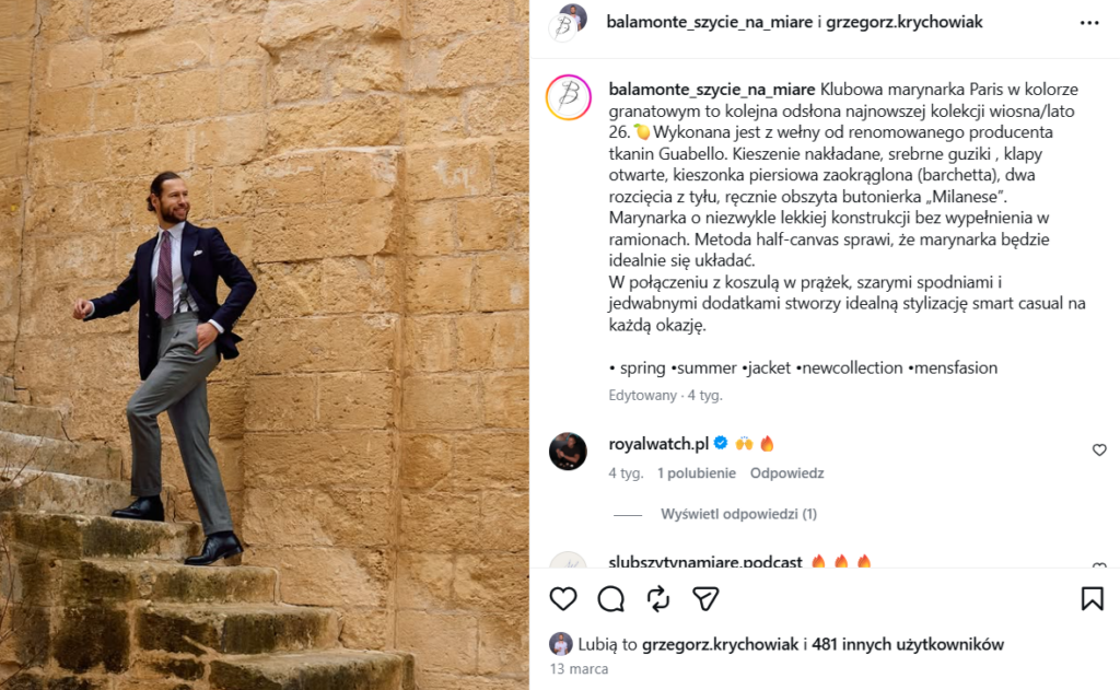 Sam Krychowiak w dalszym ciągu jest mocno zaangażowany w promocję Balamonte. Na jego Instagramie znajdziemy świeże posty, w których sam sportowiec wciela się w rolę modela prezentującego konkretnego stylizacje.