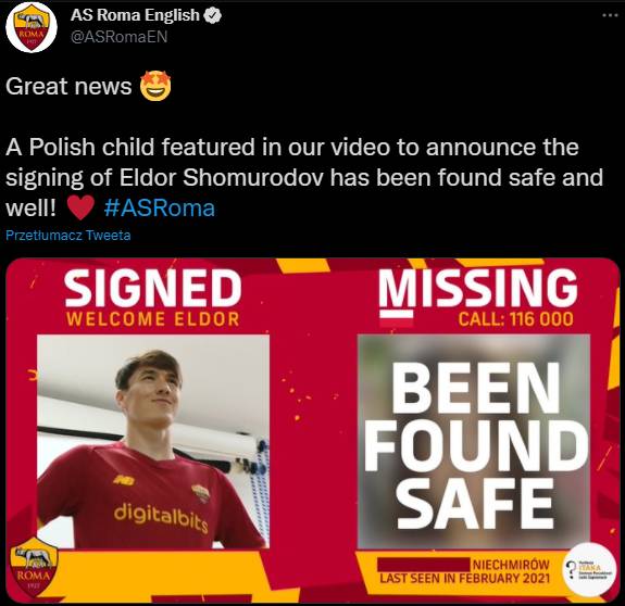 Działalność społecznie odpowiedzialna już na stałe wpisała się w strategię rozwoju AS Romy. Klub ze stolicy Włoch w 2021 roku w dalszym ciągu szeroko angażował się w pomoc charytatywną. Szlachetna akcja „Wilków”, związana z ogłaszaniem transferów i pokazywaniem w tym samym czasie w mediach społecznościowych osób zaginionych, wciąż przynosi rezultaty. Dzięki klubowi odnaleziono już kilkanaście poszukiwanych osób.