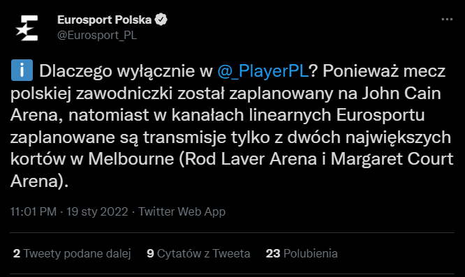 3. Jeśli wydarzy się podobna sytuacja w przypadku spotkania Igi Świątek na Australian Open rozważycie udostępnienie Playera za darmo na ten konkretny mecz?