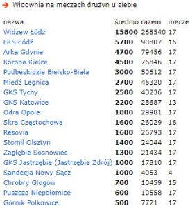 W przyszłym sezonie ŁKS także powinien mieć znacznie wyższą frekwencję i nadal być na podium. Odpadnie Widzew, dojdzie Wisła Kraków czy Ruch Chorzów. Jednak łodzianie mają nowy stadion, na którym dopiero trzy ostatnie mecze rozegrali przy oddanym stadionie do użytku. Tylko dwa przyszło rozegrać przy pełnych trybunach, wobec zamkniętego obiektu na spotkanie z Odrą Opole. O wyniku lokalnego rywala raczej nie mają, co marzyć w dłuższej perspektywie. Jednak celem powinno być wypełnienie powyżej połowy, czytaj: około dziewięciu tysięcy na każdym spotkaniu.
