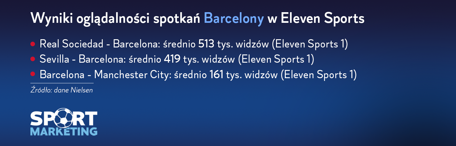Drugi ligowy mecz Barcelony, a pierwszy transmitowany przez Eleven Sports oglądało średnio pół miliona widzów. Spotkanie Sevilli z Barceloną również zgromadziło liczną widownie ze średnią 419 tys. Nawet charytatywny mecz Barcelony z Manchesterem City, który odbył się bez udziału Roberta Lewandowskiego, oglądało średnio 161 tys. widzów.