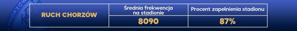 Liczby Ruchu Chorzów robią wrażenie. Byłyby na pewno lepsze, gdyby nie… ograniczenie związane z obecnym stadionem przy Cichej. Zdecydowanie najstarszy spośród wszystkich wypełnianych obiektów. Nijak nie pasuje ani do tak wielkiego klubu, ani do ligi, w której grają. Niebiescy mogą jednak liczyć na wyjątkowe wsparcie kibiców. W tej rundzie dopisał także terminarz, stąd do Chorzowa trafiały ciekawe drużyny. M.in. dzięki temu udało się trzykrotnie w lidze zaliczyć komplet widzów: Arka Gdynia, Zagłębie Sosnowiec i GKS Katowice! Takowy był także na pucharowych derbach z Górnikiem Zabrze. Wiosną nie musi być gorzej. Przyjedzie ŁKS, Wisła Kraków czy derbowy rywal GKS Tychy. Krótko mówiąc nie powinno być kłopotów z zapełnieniem wysłużonego, ale niezwykle klimatycznego stadionu.