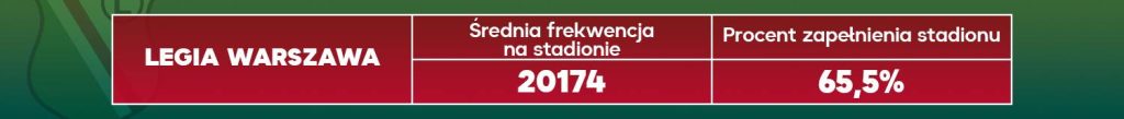 W ostatnich latach były spore kłopoty z frekwencją przy Łazienkowskiej. Mistrz Polski nie był w stanie regularnie zapełniać swojego obiektu. Teraz jest już lepiej i nie ma co tego ukrywać. Średnia frekwencja na poziomie 2/3 obiektu to dobry wynik. Ponad połowę meczów – 5 z 8. – udało się przebić wynik ponad 20 tysięcy kibiców, który powinien być granicą przyzwoitości dla tak popularnego klubu, z największego miasta w kraju. Dwie kolejne frekwencje – Piast i Miedź – były również niezłe, odpowiednio: 19045 i 18712. Jedynie liczba kibiców na pierwszy domowym meczu – z Zagłębiem Lubin – raczej należała do tych bardzo słabych, gdyż przy Łazienkowskiej było ledwie 12 tysięcy kibiców.