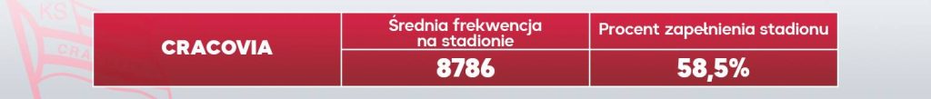 Dobry wynik Pasów, którzy wyprzedzili m.in. Lechię Gdańsk ze znacznie większym stadionem. Cracovia potrafiła wypełnić obiekt na wysokim poziomie z Legią czy Lechem. Pozostałe spotkania wyglądały nieco gorzej, jednak pewnego poziomu nie opuszczali. Zdecydowana większość meczów to ponad 50% wypełnienia obiektu. Do lokalnego rywala nadal im daleko, nawet mimo obecnego poziomu sportowego. Tutaj z pewnością jest wiele do nadrobienia. Wiosną lekko nie będzie, bowiem kilka najciekawszych drużyn z czołówki już grało przy Kałuży. To będzie test dla publiczności i kibiców Pasów.