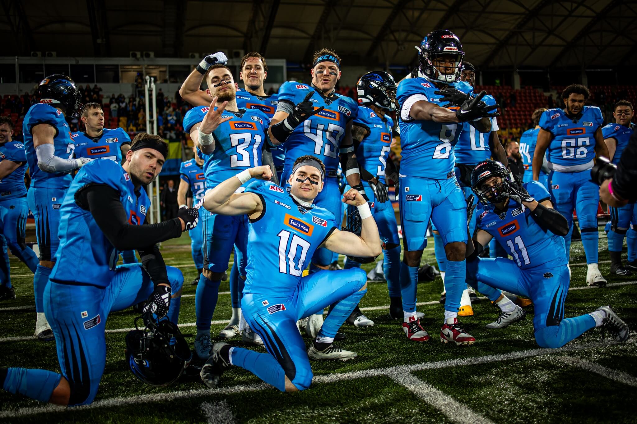 – Po porażce w pierwszym meczu jesteśmy głodni rewanżu, zwłaszcza w formacji defensywnej. Na pewno chcemy wejść w to starcie zdecydowanie agresywniej. Znamy mocne strony rywali i jesteśmy gotowi odpowiedzieć. Przeciwnik ma bardzo silnych i fizycznych zawodników w obu formacjach, więc odpowiemy dokładnie tym samym – siłą i fizycznością. Serdecznie zapraszam wszystkich kibiców przed ekrany telewizorów, komputerów i telefonów, lub na stadion w Kopenhadze! Możemy obiecać bardzo fizyczny i twardy mecz. Oddamy kawał zdrowia za każdy zdobyty yard. Gramy dla Was i zrobimy wszystko, żeby umilić Wam ten weekend zwycięstwem! – mówi Maciej Jabłoński, cornerback Panthers Wrocław.