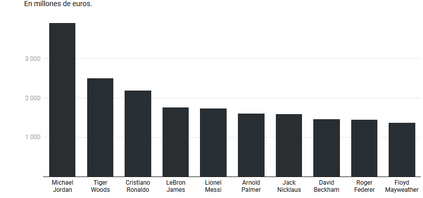 Były zawodnik otrzymuje 5% rocznej sprzedaży Jordan Brand, marki, którą Nike uruchomiło we współpracy z rzucającym obrońcą. Marka, która w ostatnim roku obrotowym wygenerowała 7,27 miliarda dolarów (6,318 miliarda euro) przychodów, przyniosła Jordanowi w zeszłym roku ponad 360 milionów dolarów (312 milionów euro). To czyni byłego koszykarza najlepiej opłacanym sportowcem wszech czasów, biorąc pod uwagę jego pensję za grę i wszystkie inne dochody uzyskane w ciągu całego życia.