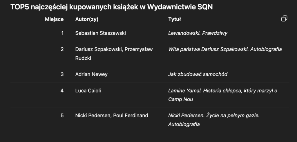 Książka Sebastiana Staszewskiego "Lewandowski. Prawdziwy" stała się niesamowitym hitem 2025 roku. Była najczęściej kupowaną publikacją w Wydawnictwie SQN.