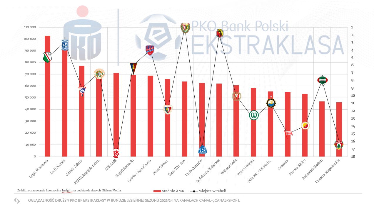 Czas na pierwsze podsumowania w PKO Bank Polski Ekstraklasie. O ile dane frekwencyjne znaleźć dość łatwo, tak trudniej jest ze szczegółowymi informacjami na temat oglądalności spotkań na antenach Canal+ i Canal+ Sport. Dane ze wszystkich 149 spotkań w rundzie jesiennej zebrała firma Sponsoring Insight na podstawie badań Nielsen Media.