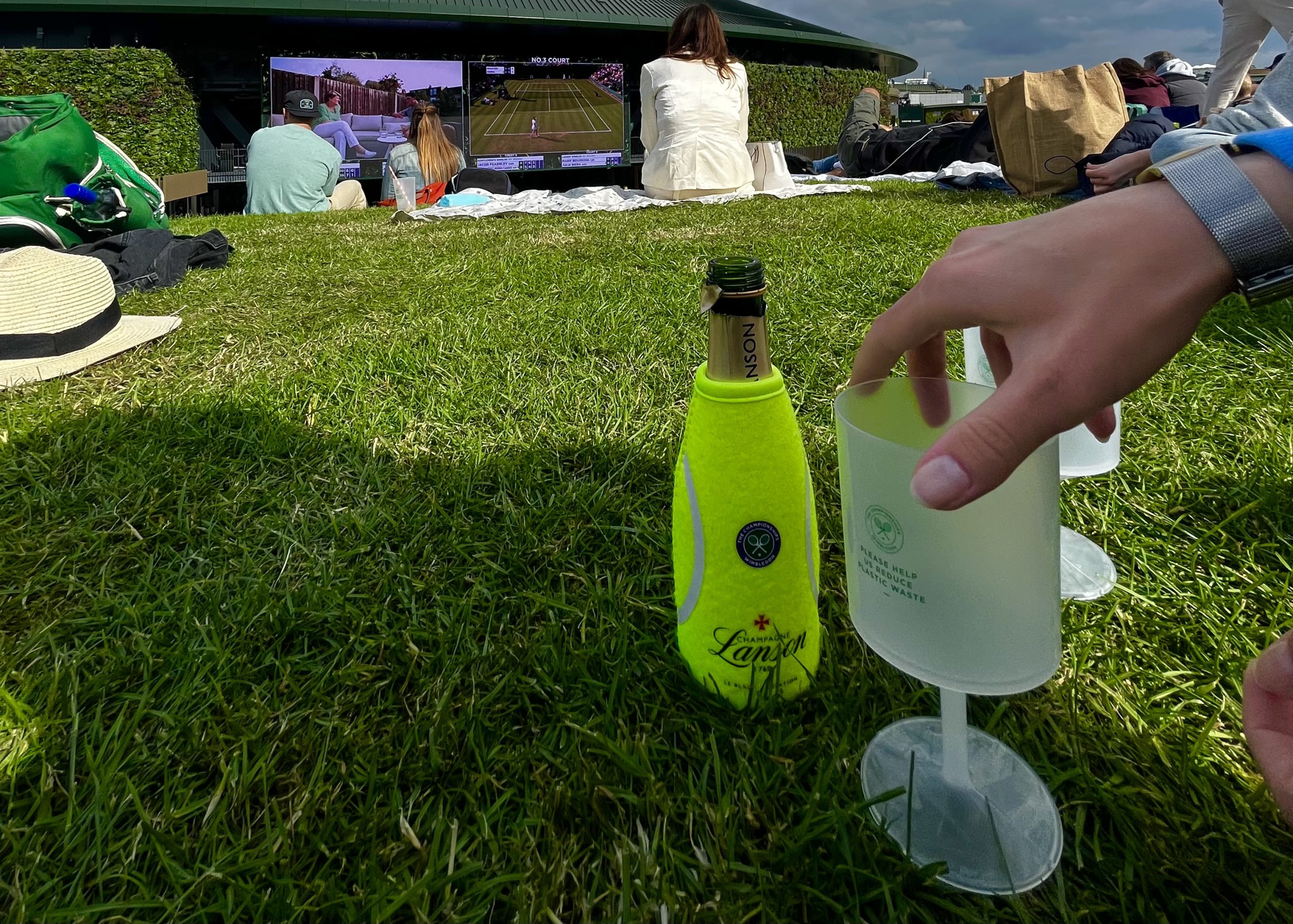 Słynny wimbledoński PIMM’S, czyli drink na bazie ginu z lemoniadą i owocami, mimo że kosztuje już 11,95 funtów za kubek, cieszy się niesłabnącą popularnością wśród kibiców. Mniej, bo 7,50 GBP trzeba zapłacić za butelkę piwa Stella Atrois a za cydr 8,10 GBP. Na Wimbledonie dostępne są oczywiście też droższe alkohole, jak Lanson Champagne. Mała butelka, ale efektowna, bo z motywem piłeczki tenisowej, kosztuje 25,50 funtów. Z kolei standardowa, duża – 92,30 funtów. Kupując napoje na obiekcie przy Church Road trzeba pamiętać, że doliczana jest kaucja (1 funt) za plastikowy kubek wielokrotnego użytku. Kaucję można odzyskać po zwróceniu go w miejscu zakupu napoju.