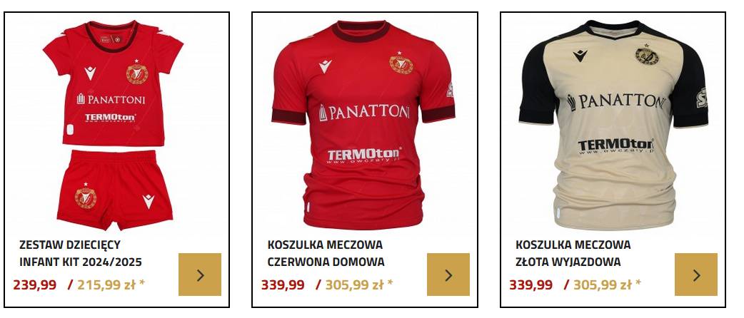Nowe koszulki domowe dostępne będą w cenie 299 zł (dorośli) lub 269 zł (dziecięce). Koszulki wyjazdowe, które znacie jako komplet jubileuszowy, kosztować będą także 299 zł. Dostępna jest także opcja personalizacji koszulki (+30 zł do ceny bazowej). Klub zaprasza do zakupu 20 lipca, czyli w dniu pierwszego meczu w sezonie.