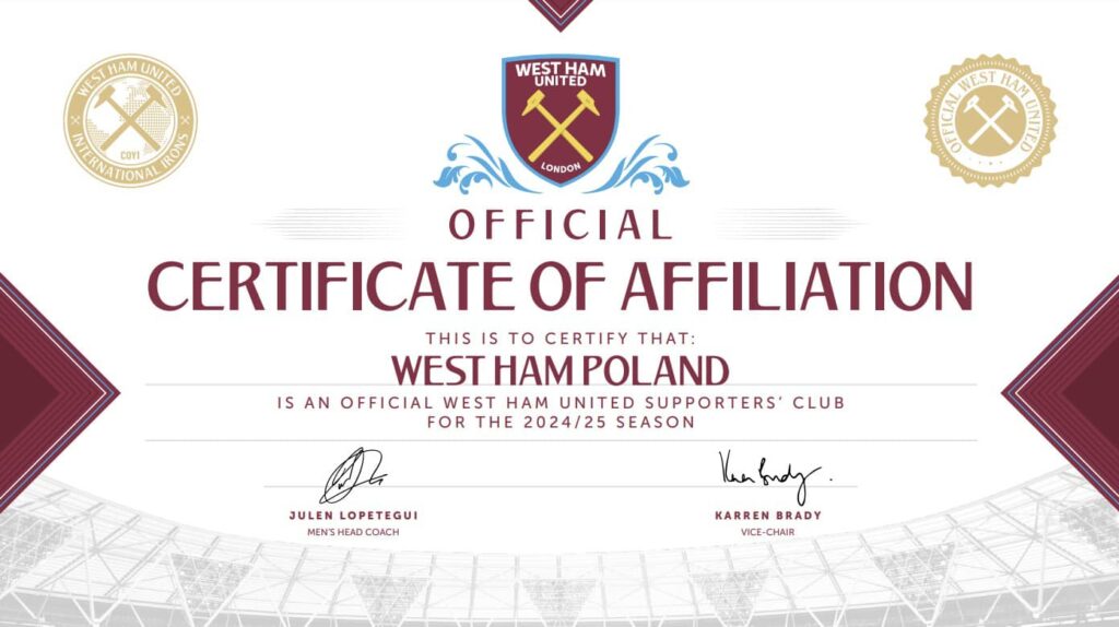 Wszystkich, którzy chcą dołączyć do Fan Clubu zapraszamy na media społecznościowe West Ham Poland oraz do bezpłatnej rejestracji przez oficjalny link: https://www.whufc.com/west-ham-poland