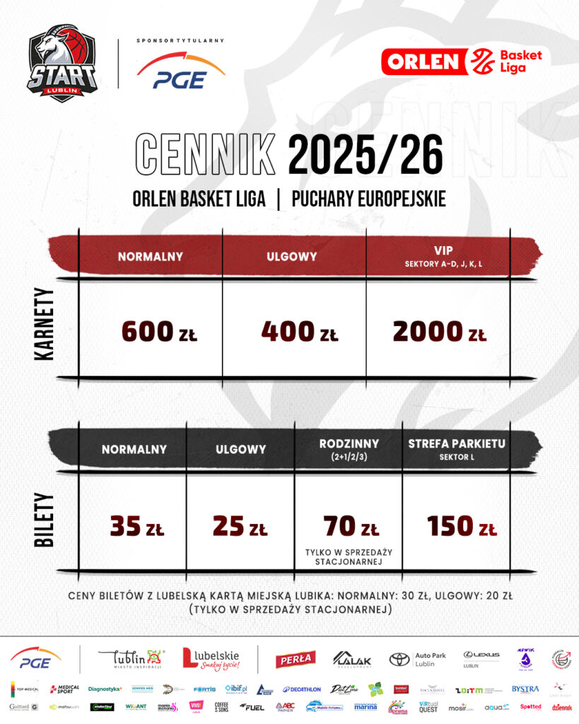 CENY KARNETÓW W SEZONIE 2025/2026: