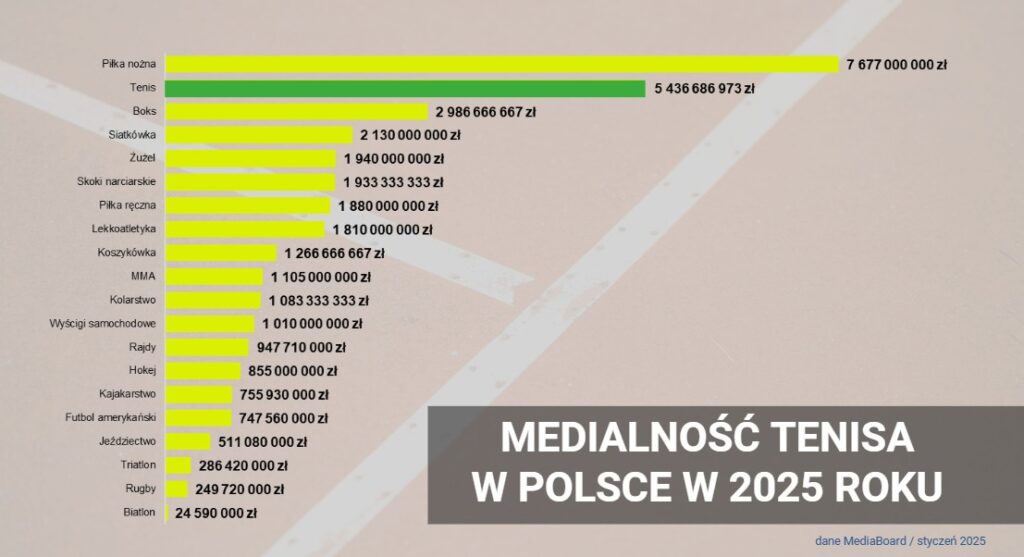 Medialność tenisa w Polsce w 2025 roku (dane: MediaBoard)