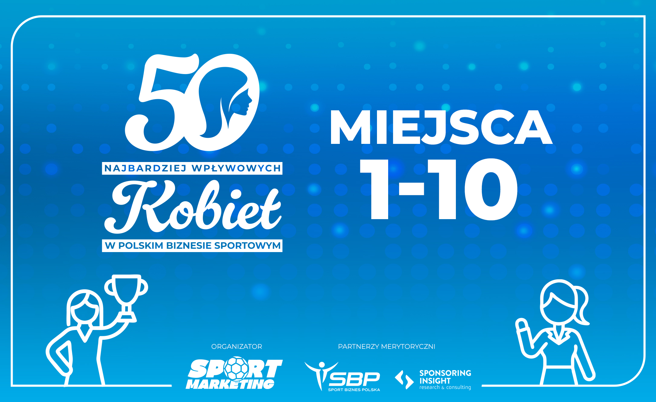 Oto lista wyróżnionych w Rankingu 50 Najbardziej Wpływowych Kobiet w Polskim Biznesie Sportowym, które zajęły w nim pierwsze 10 pozycji: