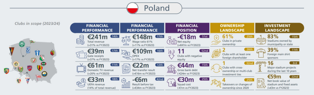 W raporcie zostały ujęte kluby PKO BP Ekstraklasy występujące w najwyższej klasie rozgrywkowej w sezonie 2023/24.