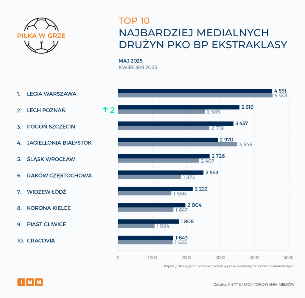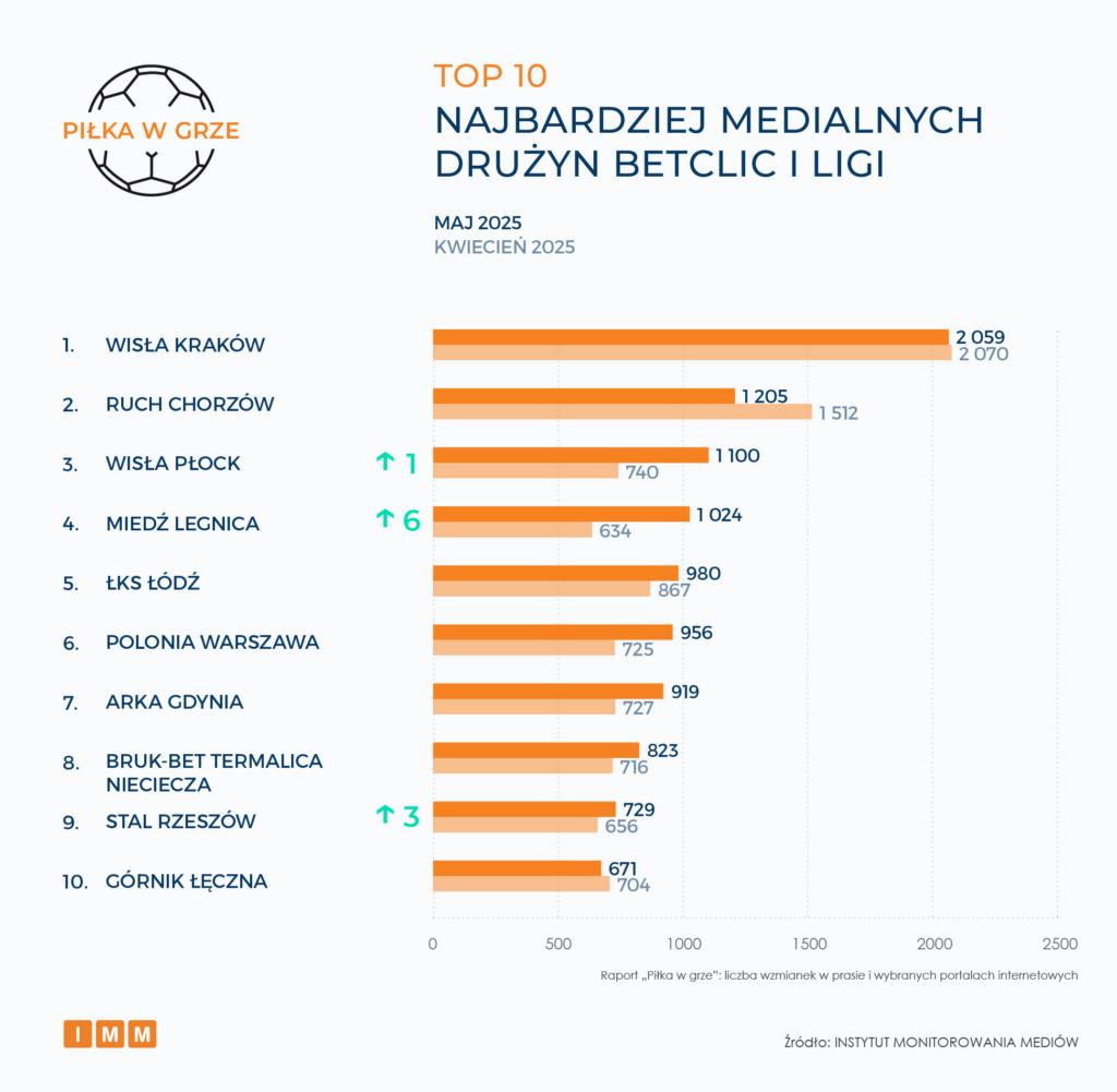 Legia Warszawa i Wisła Kraków najbardziej medialnymi drużynami maja. Zapraszamy do zestawienia IMM „Piłka w grze”